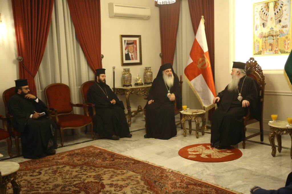 مطرانية الأردن للروم الأرثوذكس – المركز الإعلامي عمان، 9 تشرين الثاني 2023 من سُوريا (كنيسة أنطاكية) تَهادى وفد بَطريركي رَفيع الى العاصِمة الأردنية عمّان تَمثل بصاحب السّيادة المِتروبوليت أثناسيوس فهد متروبوليت اللاذقية وصَاحب السّيادة المُتروبوليت أفرام مَعلولي ميتروبوليت حَلب الجزيليّ الإحترام، حَاملين لكنيسة القُدس رِسالة المَحبة الأخوية وعَودة الشّركة الكنسيّة ما بَين بطريركية أنطاكية وسائِر المَشرق للرّوم الأرثوذكس وبَطريركية الرّوم الأرثوذكس المَقدِسية. بفرحٍ كَبير إستقبلَ صَاحبُ السّيادة المُطران خريستوفوروس المطارنة الضّيوف في دارِ المُطرانية ظُهر اليوم، مُرحباً بحُضورِهم الجَليل ومُعرباً بكلماتِ المحبة الأخوية تجاه قرار المجمع الأنطاكي واللحظةِ التاريخية التي سَتذكُرها الأجيال دوماً، كما إستقبلَ الوفد الكريم بإسم غِبطةِ البَطريرك ثيوفيلوس الثالث بطريرك المدينة المُقدسة ناقلاً مِن خِلالهم أصدق مَشاعرِ الغبطةِ والسّرور لغبطةِ البطريرك يُوحنا اليازجي بَطريرك أنطاكية وللمَجمعِ الأنطاكي المُقدس، تثميناً لهذه الخطوةِ المُباركة. المُطران خريستوفوروس أكَد على أهمية عَودة الشّركة الكنسيّة ودوامِ روابط المَحبة المَسيحية الخالصة لما فيهِ خير العائلة الأُرثوكسية في البطريركيتن الشقيقتين، كما إنعكاس ذلك إيجابياً على العالم الأرثوذكسي والمَسيحي في الشرق وحولَ العالم. اصحاب السيادة المطارنة الضيوف بدورِهم إعتبروا هذهِ المُناسبة الكبيرة ما هي إلا بداية جَديدة تَجمعُ الكنيستين الشقيقتين على كلِ المُستوياتِ، وقد جَاءت اللحظة المُباركة في وقتٍ عَصيبٍ يتطلّعُ أبناء الكنيسةِ الجامعة للوحدةِ والصّلاح وهذا ما كانَ إلا بالصلاةِ والصّوم والحِكمة. هذا وأثنى المُطران خريستوفوروس على مَوقفِ كنيسةِ أنطاكية الوَطني والإنساني لدعمهم المنكوبينَ في غزة، حيثُ سلّم الوفد الضّيف سيادته مبلغاً مالياً (تبرعاً) مِن غبطة البطريرك يوحنا اليازجي وعُمومِ الرّعية الأنطاكيّة لدعمِ أهلنا في قطاعِ غزة. حَضر الإستقبال في دارِ المطرانية كلٌ مِن الأرشمندريت أثناسيوس قاقيش والأرشمندريت خريستوفوروس حداد، والآباء جراسيموس طاشمان وصفرونيوس حنا ومَعالي م. سامي هلسة والإعلامي فؤاد الكرشة وعَدد من الشمامِسة والرّهبان.
