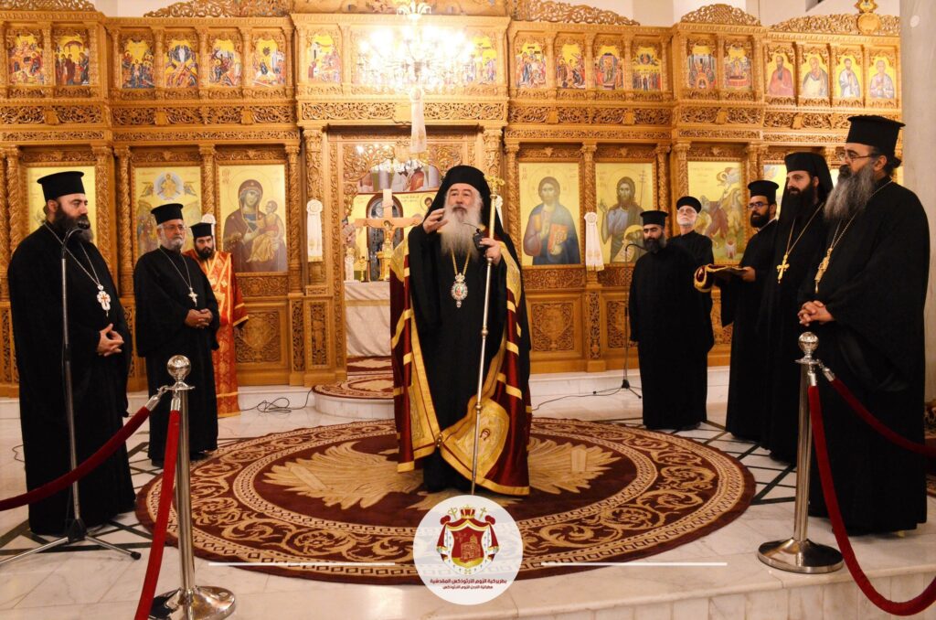 مطرانيَّةُ الرّومِ الأرثوذكس / المركزُ الإعلاميّ عمّان، الأربعاء 24 أيّار 2023 صورٌ من خدمَةِ الغروبِ بمناسبةِ عيدِ الصّعودِ التي ترأسَها سيادةُ المطران خريستوفوروس في كنيسةِ الصّعودِ الإلهيّ / خلدا . تخلّلَ الخدمةَ صلاةُ الخمسِ خبزات ، حيث التفَّ الإكليروس والرّعيّةُ الأرثوذكسيّةُ احتفالًا بالعيد ، وفي نهايةِ الخدمةِ عايدَ سيادتُه رعيّةَ الكنيسةِ ورعاتَها بعيدِ كنيستِهم . ثم توجّهَ الجميع الى قاعةِ الكنيسة . عاونَهُ في الخدمةِ لفيفٌ من الكهنةِ والشّمامسةِ بحضورِ المؤمنين.