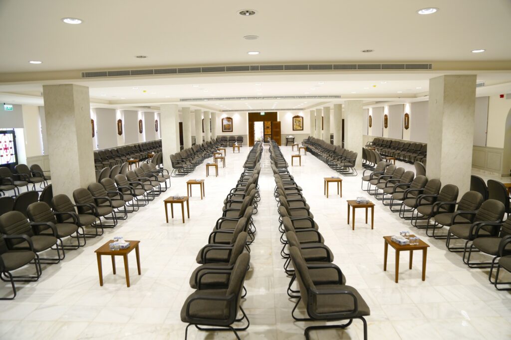 صور للقاعة الكبرى لكاتدرائيّةِ دخولِ السّيّدِ إلى الهيكل – الصّويفيّة بعد أعمال التّرميمِ فيها وتجديدِها بتبرّعٍ كريمٍ من السّيّد جورج نصره وزوجتِه السّيّدة ديانا مدانات.