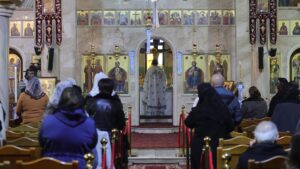 عَلَى رَجَاءِ القِيَامَةِ والحياة الأبديّة ، ترأسَ الأرشمندريت أثناسيوس خدمةَ القدّاسِ الإلهيّ وجنّازَ الأربعين للشَّيْخ الجَلِيلِ والمغبوط الذِّكْرِ قُدسِ الإِيكُونوموس إِبْرَاهِيم جِرْيِس قَاقِيش بمعاونةِ الآباء جيراسيموس وذيوذوروس وبشارة في كَنِيسَةِ الصُّعُودِ الإِلهي لِلرُّوم الأُرثوذكسِ – خلْدا .