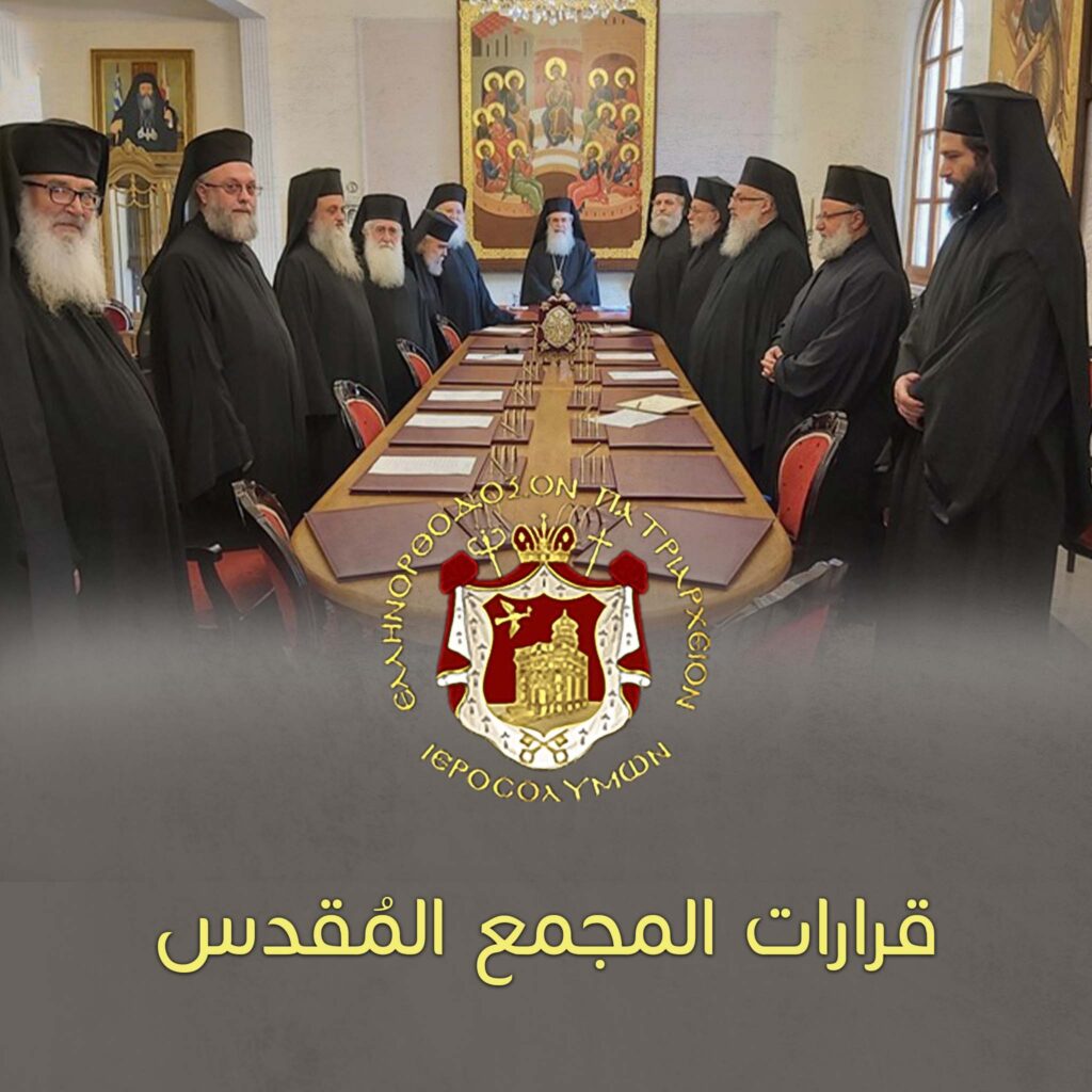 وفي خِتامِ أَعمالِ المَجمَعِ، رَفَعَ صاحِبُ الغِبطةِ وأَصحابُ السِّيادةِ صَلواتهم من أَجلِ سَلامِ العالَمِ، مُتَمَنِّينَ لِأَبناءِ الكَنيسةِ المَقدِسِيَّةِ في بِلادِنا المُقَدَّسَةِ وسائِرِ أرجاءِ المَعمورَةِ السلامَ والطمأنينيةِ في ضلِّ المجهول والتقلباتِ الذي يعيشها العالم. وأَنْ يُشرِقَ إلهنا بِنُورِهِ الإِلهيِّ أَذهانَ قادَةِ العالَمِ وكُلِّ مَسؤولٍ، لِيَعُمَّ من خِلالِهِم السِّلم والسَّلامُ في العالَمِ أَجمَعَ، وبِلادِنا المُقَدَّسَةِ المُتمَخِّضَةِ بِالأَحزانِ، مُبَلْسِمًا بِحَنانِهِ وتَعْزِياتِهِ الإِلهيَّةِ قَلبَ كُلِّ مَحزونٍ ومَكسورٍ.