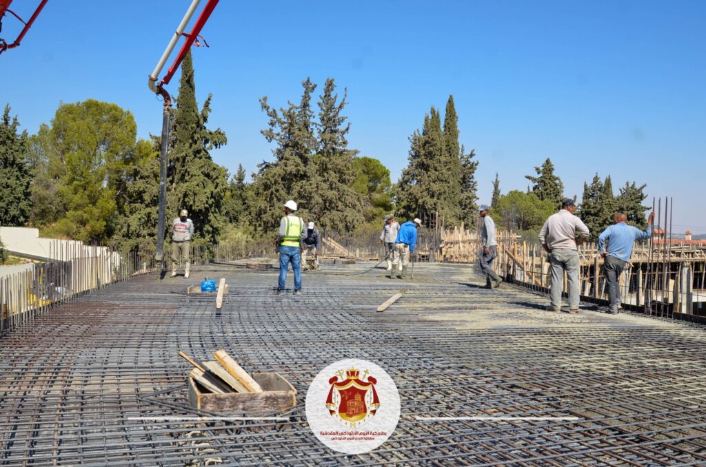 صورٌ من مراحلِ الصَّبّةِ الخَرَسانيّةِ الأخيرةِ للثُّلثِ الأخيرِ من الطّابقِ الثّاني ، بمساحةِ 910 مترًا مربّعًا، وبها تنتهي مراحلُ بناءِ العظمِ في المركزِ الأرثوذكسيّ في دبّين ، ولم يتبقّى إلا رفعُ الأدراجِ فوقَ طابقِ الرّوف ولا تتجاوزُ الخمسينَ مترًا مربّعًا.