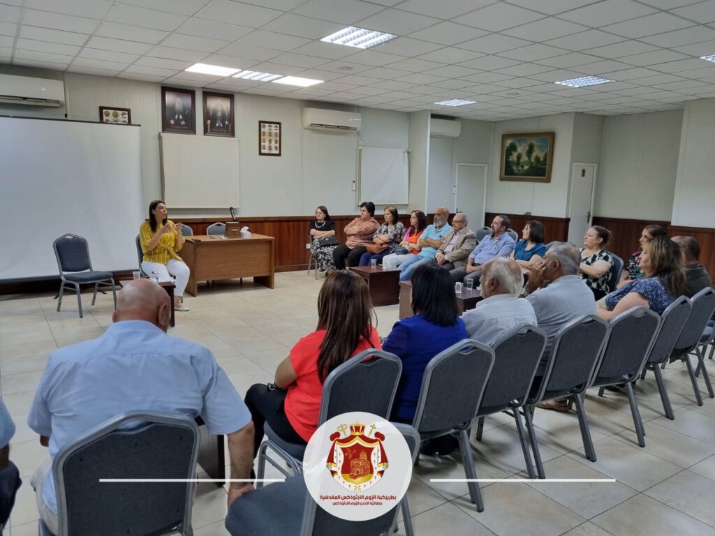 مطرانيَّةُ الرّومِ الأرثوذكس / المركزُ الإعلاميّ عمّان، الجمعة 22 أيلول 2023 عُقدَ مساءَ الثّلاثاء في قاعةِ القدّيسَين قسطنطين وهيلانة بحضور حوالي ٥٠ شخصًا من أهالي الخطّاب للدّورة 19 من برنامجِ “خاتمَين على صخرةِ الرّبّ” لقاءٌ روحيّ وإرشاديّ بحضورِ قدسِ الإيكونوموس إيرينيوس (سالم) مدانات مسؤولِ مكتبِ الزّواجِ وبيتِ العائلةِ المسيحيّ والمرشدة سمر تادرس حيث تحدّثوا جميعًا عن أهمّيّةِ ودورِ الأهلِ في دعمِ ومساندةِ أبنائِهم المقبلينَ على الزّواجِ في حياتِهم الجديدة من نُصحٍ وإرشاد ، وحثّهم خلالَ فترةِ الخطوبةِ على التّعارُفِ الحقيقيّ والمصارَحة. والأهمّ هو أن يقدّموا النُصحَ والإرشادَ لأبنائِهم بعد الزّواجِ دونَ التّدخّل بأمورِهم الشّخصيّة .