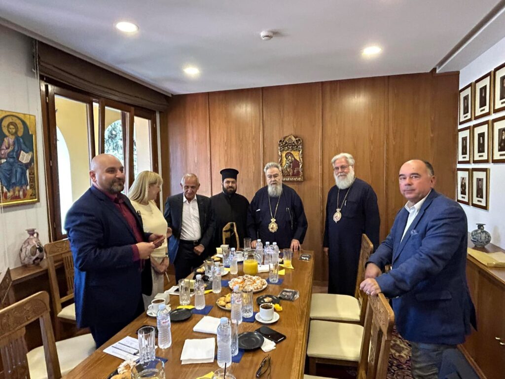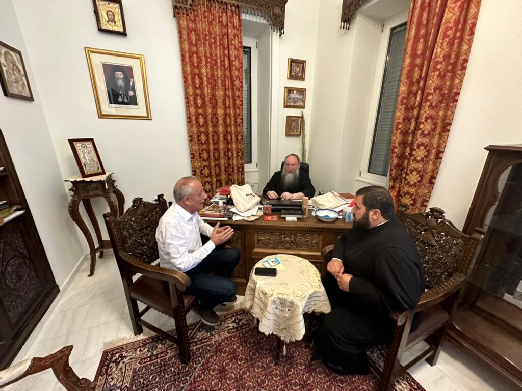 مطرانيّةُ الرّومِ الأرثوذكس / المركزُ الإعلاميّ عمّان ، الأحد 9 تمّوز 2023 صورٌ من اللّقاءِ الذي تمّ صباحِ الثّلاثاء 4 تمّوز في اليونان بين وفد من الأردن مكون من الإيكونوموس د. بشارة دحابرة ممثِّلًا عن الكنيسة ، وعطوفة السّيّد رستم مكجيان ممثِّلًا عن هيئةِ المغطس ، والسّيّد عامر طوال ممثِّلًا عن هيئةِ تنشيطِ السّياحة، مع لجنةِ السّياحةِ التّابعةِ لرئاسةِ الأساقفة ، بحضورِ سيادة مطران فيريا كيريوس كيريوس بندلايمون مطران نيابولي برنابا وبحضورِ القنصلِ الفخريّ باليونان السّيّدة ذيسبنا منداه ، والسّيّد ديمتري لازاريديس مسؤول التّسويقِ والتّرويج. كانت حصيلةُ اللّقاءِ ترتيبُ زيارةِ رسميّينَ إلى اليونان ليتعرّفوا على الأماكنِ الأثريّةِ وذلك ردًّا على زيارةِ لجنةِ السّياحةّ اليونانيّةِ إلى الأردنّ العام الماضي ، كما اتُّفِقَ على زيادةِ عددِ الحجّاجِ إلى الأردنّ ، وتفعيلِ دورِ الشّبابِ خلالَ زياراتِهِم للأردنّ .