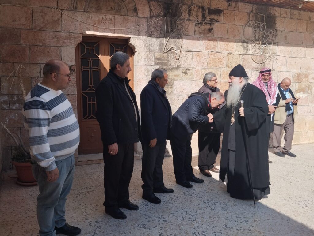 مطرانيَّةُ الرّومِ الأرثوذكس / المركزُ الإعلاميّ عجلون، السّبت 10 شباط 2024 التقى صاحبُ السّيادة المطران خريستوفوروس والأرشمندريت أثناسيوس الرّئيسُ الرّوحيّ للشّمال أمسِ الجمعة أعضاءَ لجنةِ كنيسةِ الرّوحِ القدسِ في عجلون بحضورِ راعيَي الكنيسةِ الإيكونوموس غريغوريوس والأب إفثيميوس ، فباركَ سيادَتُهُ اجتماعهم الأوّلَ موضِحًا بنودَ قانونِ اللّجانِ الجديدِ ليتسنّى لهم استمرارُ العملِ لخدمةِ الكنيسةِ والرّعيّةِ في نشاطاتِهم الرّوحيّةِ والاجتماعيّة ، كما استمع بدورِه إلى أعضاءِ اللّجنةِ وناقشوا العديدَ من القضايا التي تخصُّ الرّعيّة ، متمنّيًا لهم أن يسدّدوا أهدافهم وأمنياتِ الآباءِ والأجداد .