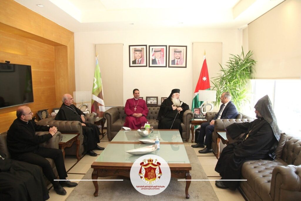 زارَ وفدُ مجلسُ رؤساءِ الكنائِسِ في الأردنّ برئاسةِ صاحبِ السّيادةِ المطران خريستوفوروس، اليومَ الإثنين، معالي الدّكتور يوسف الشّواربة في مكتبهِ في مبنى الأمانة، مُهنّئينَ بمناسبةِ تجديدِ الثّقةِ بمعاليه أمينًا لأمانةِ عمّان الكبرى وبحلولِ شهرِ رمضان الفضيل.