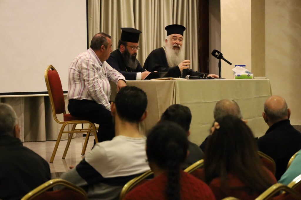 مطرانيَّةُ الرّومِ الأُرثوذكس / المركزُ الإعلاميّ عمّان ، السّبت 15 آذار 2025 صورُ المحاضرةِ الرّوحيّةِ لسيادةُ المطران خريستوفوروس في مقرِّ جمعيّة النّهضةِ الأرثوذكسيّة / الأشرفيّة بحضورِ الإيكونوموس سوتيريوس راعي كنيسة تجلّي المخلِّص ورعيِة جبلِ الأشرفيّة والسّيّد الياس ضبيط رئيسِ شبيبةِ جمعيّةِ النّهضة ، الذين قدّموا لسيادتِه أيقونةً لوالدةِ الإله . تحدّثَ سيادتًه عن مسيحيّتِنا وكيف نحياها في المجتمع ، مستغلّين جميع الوسائلِ المتاحةِ لخلاصِ نفوسِنا والآخرين ، ومتمثّلين بالمسيحِ يسوع الذي نلتقي به في القدّاس الإلهي .