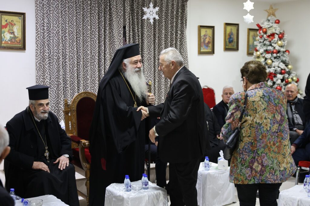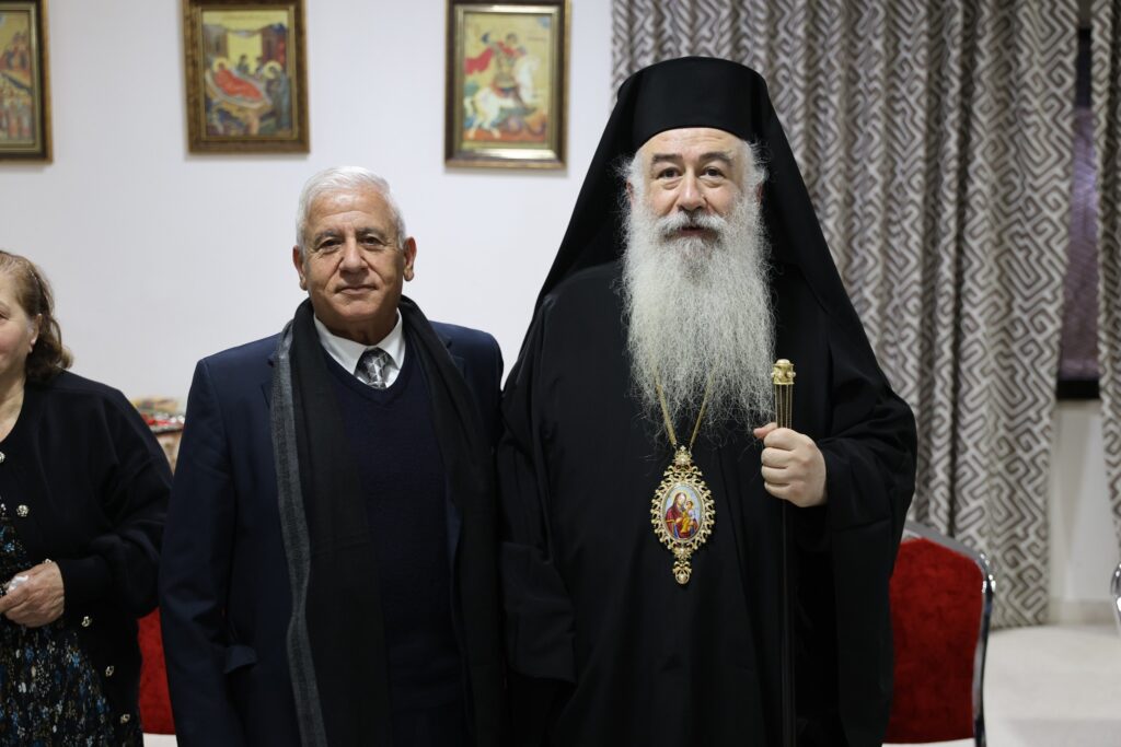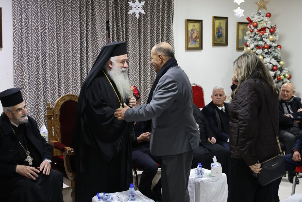 سيادةُ المطران خريستوفوروس يعايدُ أبناءَ الرّعيّةِ في صافوط بعيد الميلاد المجيد بحسب التّقويمِ الغربي يرافقه الأرشمندريت خريستوفوروس الرّئيسُ الرّوحيّ لمحافظة البلقاء والايكونوموس بطرس راعي الكنيسة .