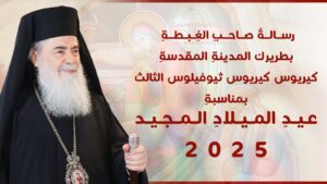 يتقدم صاحب الغبطة كيريوس كيريوس ثيوفيلوس الثالث بطريرك المدينة المقدسة أورشليم وسائر أعمال فلسطين والأردن مع أعضاء المجمع الأورشليمي المقدس وأخوية القبر المقدس بأحر مشاعر المحبة الى كهنة الرعايا الأجلاء وأبنائها المحبوبين بمناسبة بدء الصوم الأربعيني المقدس, ضارعين الى الرب الإله أن يكون هذا الصوم فترة بركة ونعمة إلهية وزمن توبة صادقة لنذوق فيه طعم التواضع والمحبة بالصلاة والصوم, مُهيئين النفوس نحو آلام المخلص الرب يسوع المسيح وقيامته المجيدة.
