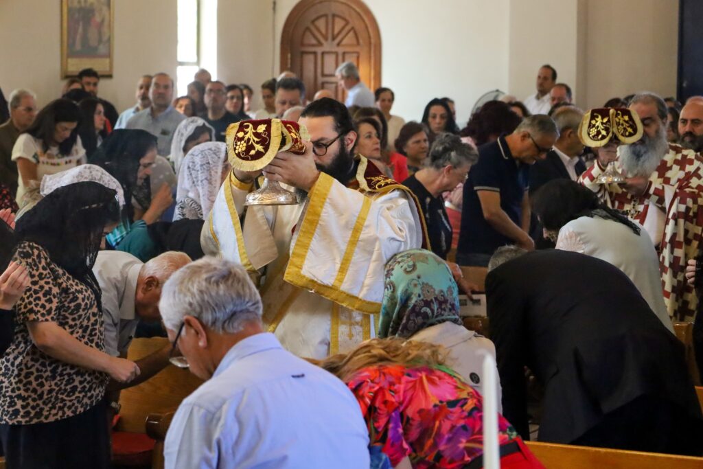 صورٌ من خدمةِ القدّاسِ الإلهيّ ( اللّيتورجيّا الإلهيّة ) الذي أقامه الأرشمندريت فينيذكتوس في كنيسةِ الصّعود الإلهي – خلدا .