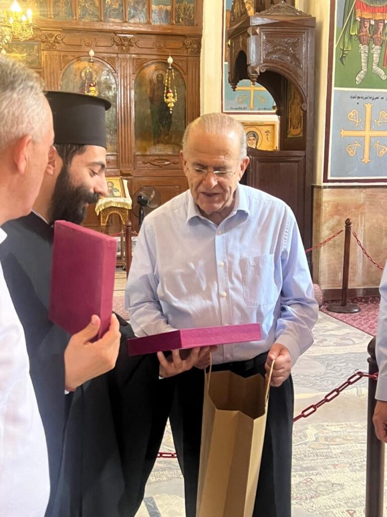 زارَ وزيرُ الخارجيّةِ القبرصيّ كنيسةَ القدّيسِ جيورجيوس – الخارطة في مأدبا كان في استقبالِهِ نيابةً عن سيادةِ المطرانِ خريستوفوروس قدسُ الأبِ إشَعياء حداد الذي قدّمَ له شرحًا عن الكنيسةِ والخارطةِ الفُسيفسائيّةِ وتاريخِها، ثمَّ قدّم للوزيرِ الضّيفِ أيقونَةَ السّيِّدةِ العذراء بركَة مقدَّسة .