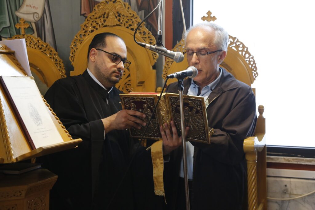 عاونَهُ في الخدمةِ الأرشمندريت خريستوفوروس والإيكونوموسان إبراهيم وألكسندروس والأب نيكيفوروس ورئيسُ الشّمامسةِ سلفستروس والشّمّاس المتوحِّد خريسانثوس بحضورِ أبناءِ الرّعيّة