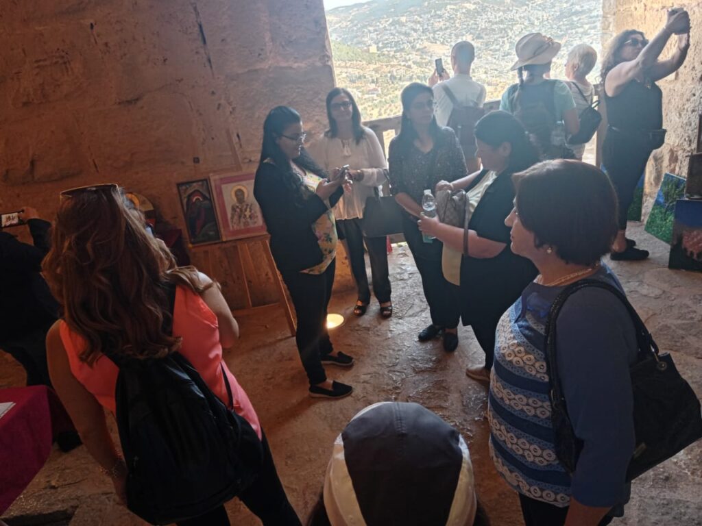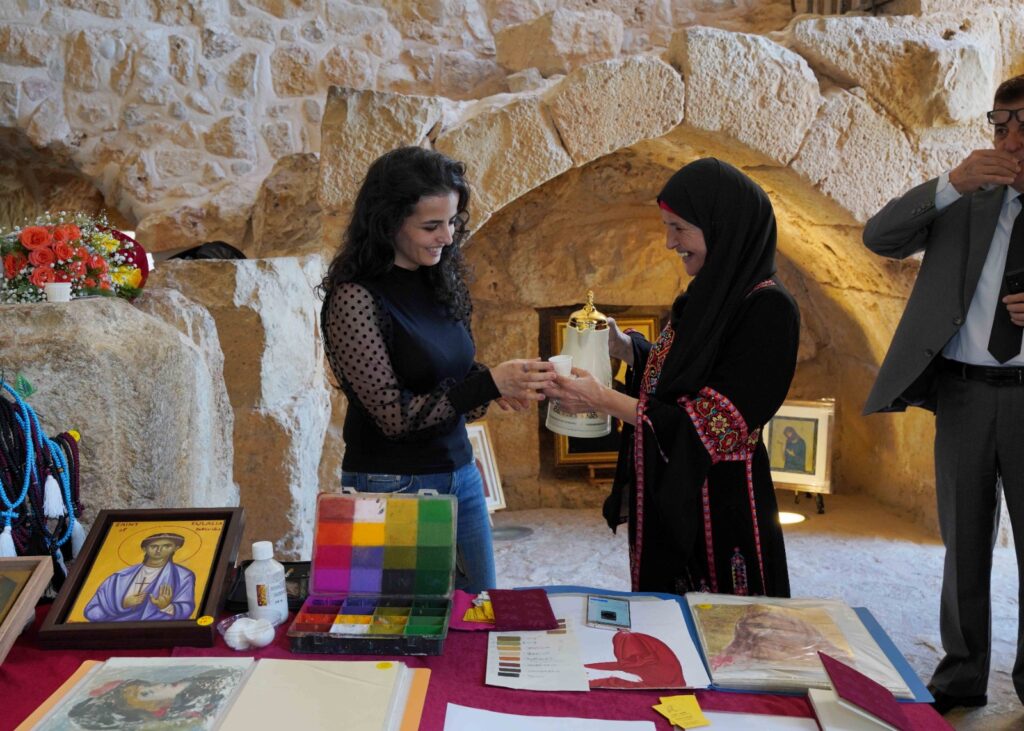 مطرانيّةُ الرّومِ الأُرثوذكس / المركزُ الإعلاميّ عجلون ، السّبت 30 أيلول 2023 شاركتِ الفنانّةُ روان الرّبضي في يومِ السّياحةِ العالميّ الذي انعقدَ أمسِ الجمعة بعنوانِ (السّياحة والاستثمار الأخضر) تحتَ رعايةِ عطوفةِ محافظِ عجلون الأكرم الدّكتور قبلان الشّريف في ساحةِ قلعةِ عجلون الأثريّة . تخلّلَ الاحتفالُ عددًا من الكلماتِ وعرضًا فولكلوريًّا لفرقةِ كفرنجة للفنونِ الشّعبيّةِ ومن ثمّ وعلى هامشِ الفعاليّةِ افتتحَ عطوفتُهُ والضيوفُ الكرام بازارَ المنتوجاتِ المحلّيّةِ والحِرَفِ اليدويّةِ والمطرَّزاتِ والمشغولاتِ اليدويّةِ والفنونِ التّشكيليّة . كما عرضَتِ الفنّانةُ روان العديدَ من الأيقوناتِ الرّوميّةِ – البيزنطيّةِ من كتابَتِها والتقتِ العديدَ من المسؤولين والسّياحِ الذين عبّروا عن إعجابِهم بهذا الفنِّ الكَنَسيّ العريق. الصّوَر بعدسَةِ عيسى الربضي