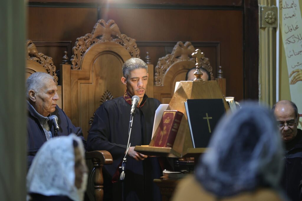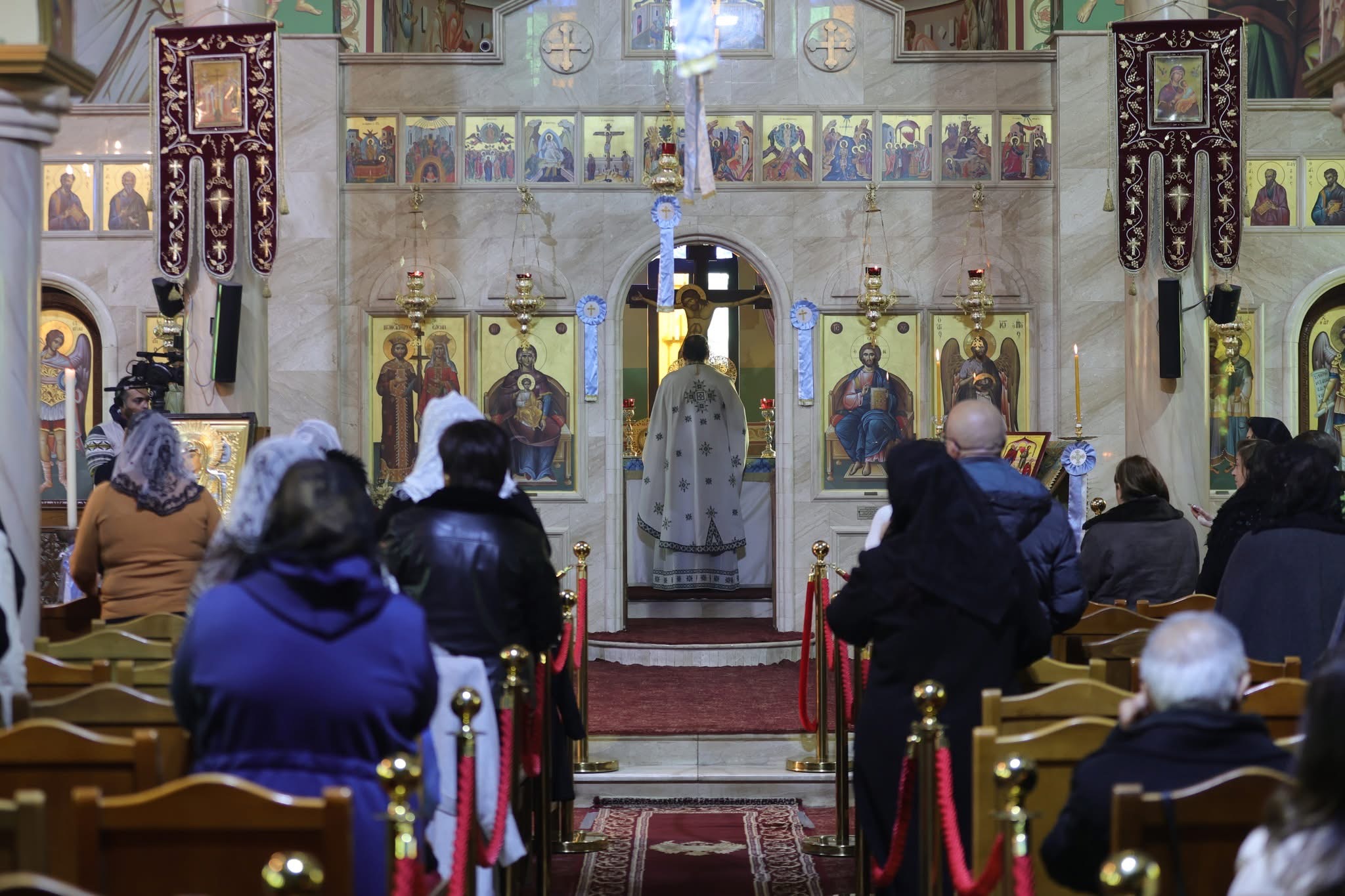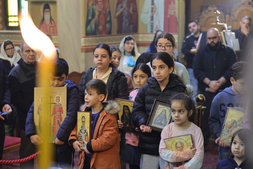 صورٌ من خدمةِ القدّاسِ الإلهيّ ( اللّيتورجيّا الإلهيّة ) الذي ترأسَه الأرشمندريت أثناسيوس بمعاونة الإيكونوموس ألكسيوس بحضورِ أبناءِ الرّعيّة في كنيسة القدّيسَين قسطنطين وهيلانة – مرج الحمام بمناسبةِ أحد الفرّيسي والعشّار ( بدء التّريودي ) , وتذكارِ القدّيسان مكاريوس المصري ومرقس أسقف أفسس .